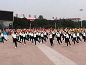 草青青cqq:大港全民健身 集体做广播操