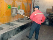 护栏刷漆 扮靓母亲河 迎春天