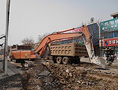 大港石化路开始路面修整工程