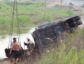 天气热大卡车也要进河洗澡?