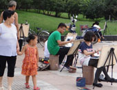 小画师相聚广场共绘大港美景