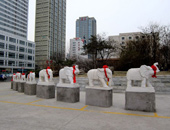 新开路边靓色大象小象排排坐