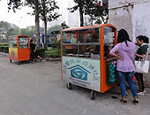 造型别致的便民早点车进社区