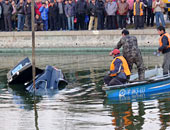 帕萨特冲进河中警民携手打捞