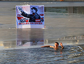 冬泳爱好者北安桥头庆祝元旦