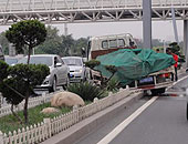 快速路车祸 双排车撞隔离带