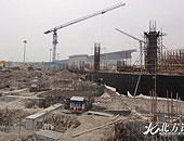 实拍:体育中心副馆主体完工