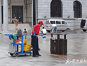 冬去春来园林撤换绿化带挡板