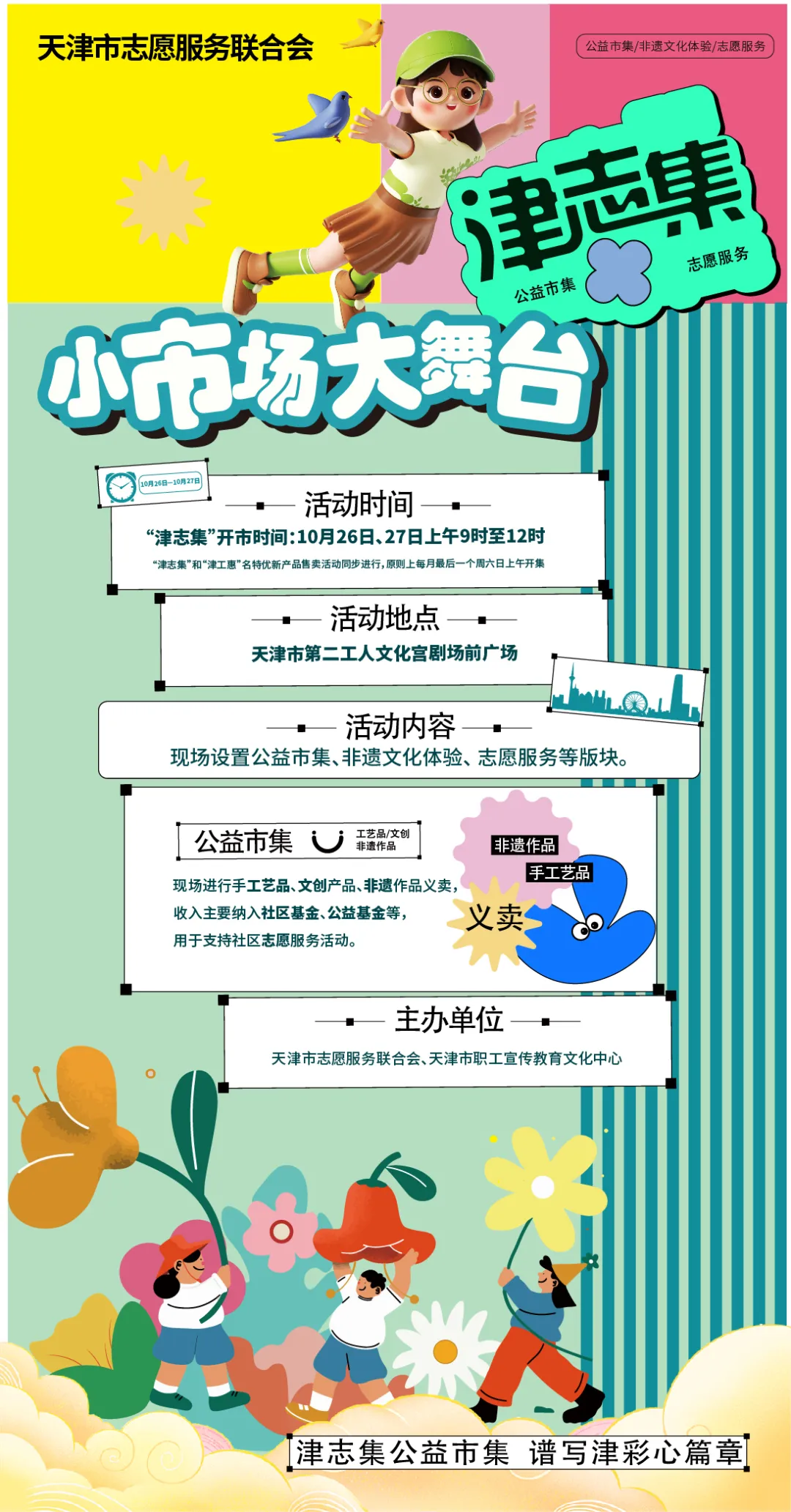 2024年天津市志愿服务公益市集——“津志集”,即将于10月26日至27日在二宫与市民朋友再次相会!“津志集”以“百姓志愿、百姓实践、百姓美好生活”为主题,旨为广大群众、志愿者、社会组织、社会工作者搭建一个交流展示的平台。