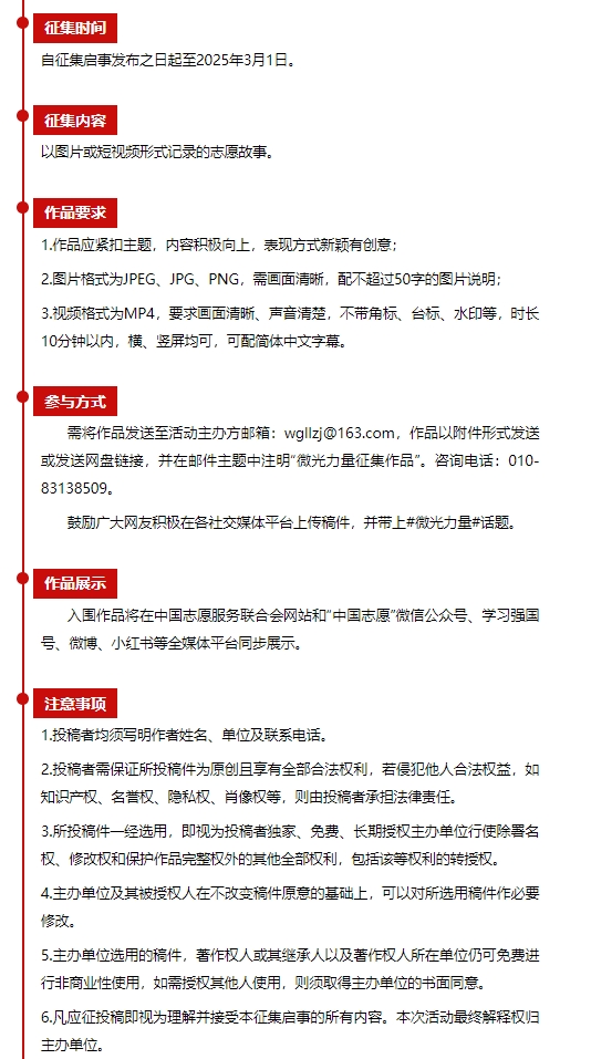 发起“志愿服务•微光力量”网上征集展示活动