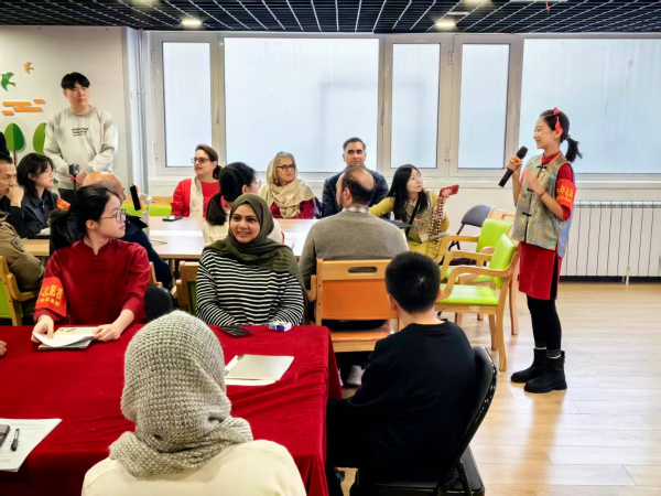 2月13日下午,“融智中巴 慧育未来”AI背景下“高校+社区”国际交流志愿服务活动在河西区桃园街居家养老服务中心顺利举办。本次活动由市委社会工作部、市妇联指导天津外国语大学主办,河西区委社会工作部、河西区桃园街道办事处、桃园街广顺园社区等承办,“社区+高校”小鲤智家志愿服务团队协办,社区家庭、小小志愿者、天津外国语大学学生志愿者与25名巴基斯坦来华代表团成员参与活动,以志愿服务为纽带,深化中巴民心相通。本次活动创新搭建“高校+社区”联动志愿服务体系,来自社区家庭的小小志愿者与天外学生志愿者分工协作、联动发力,全程为巴基斯坦来华友人提供英语翻译,深入讲解介绍中国故事。